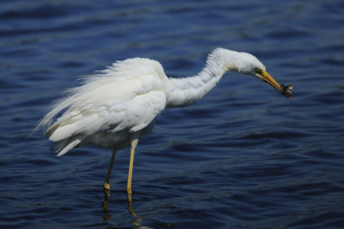Normaliter schudden Grote Zilverreigers zich pas na het verorberen van de prooi lekker uit. Deze vogel laat de rillingen wat eerder over zijn rug lopen ..... :-)