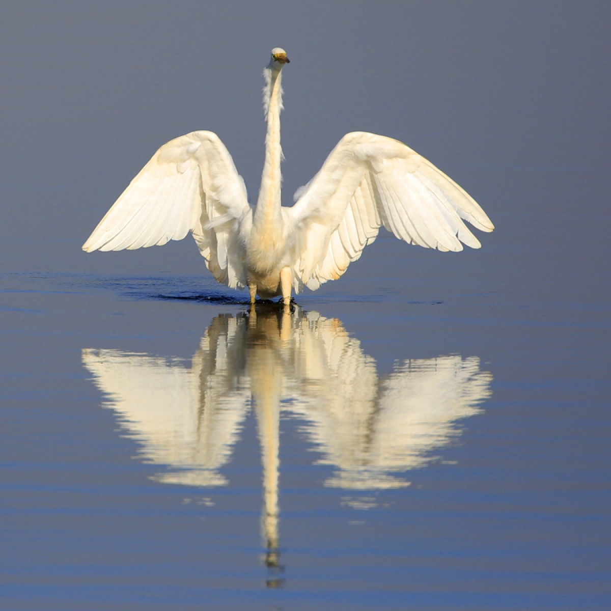 Deze Grote Zilverreiger gebruikt regelmatig zijn vleugels om te vissen. Genieten!