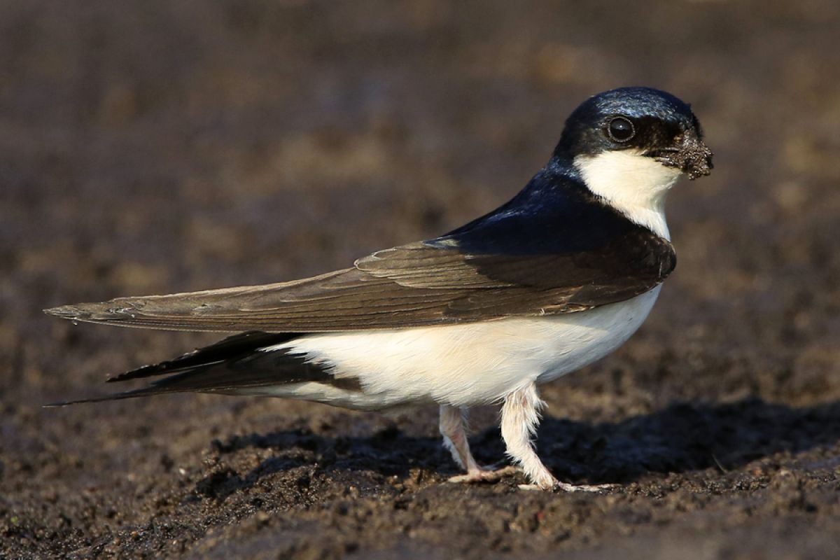 Na een stevige regenbui kunnen de Huiszwaluwen weer vrolijk verder met het verzamelen van bouwmaterialen voor hun bijzondere nesten, zoals hier een snavel vol modder ...