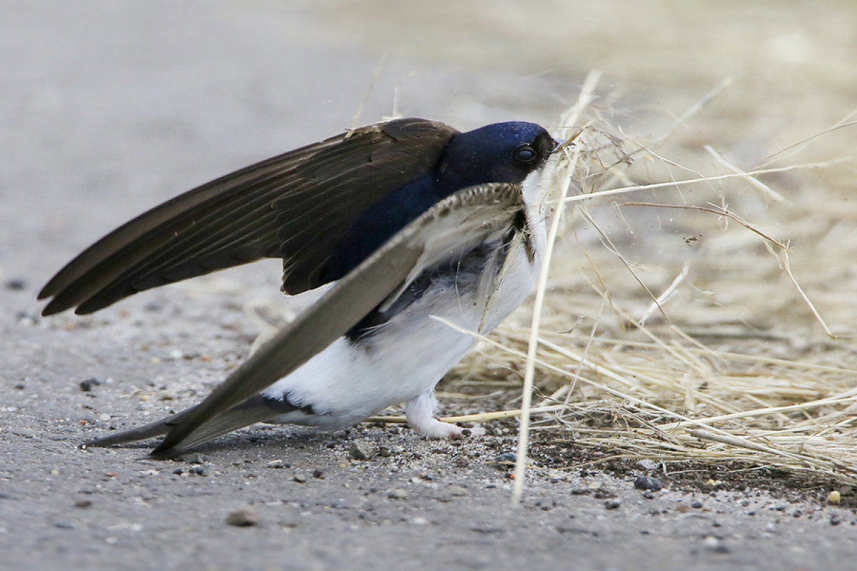 De Huiszwaluwen zijn volop bezig met het verzamelen van nestmaterialen. Hoewel je er hier maar eentje aan het werk ziet weten we allemaal dat er heel veel meer zijn en dat de zomer nu echt wel is begonnen... :-)