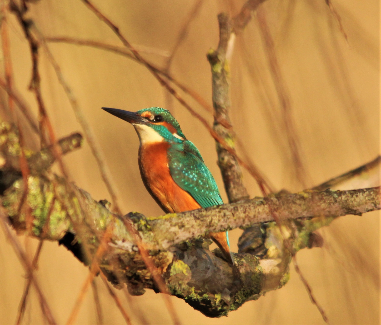 Ik had mij net verscholen tussen het riet en jawel deze knappe ijsvogel kwam recht op mij afgevlogen zat even op deze tak en vloog snel verder.