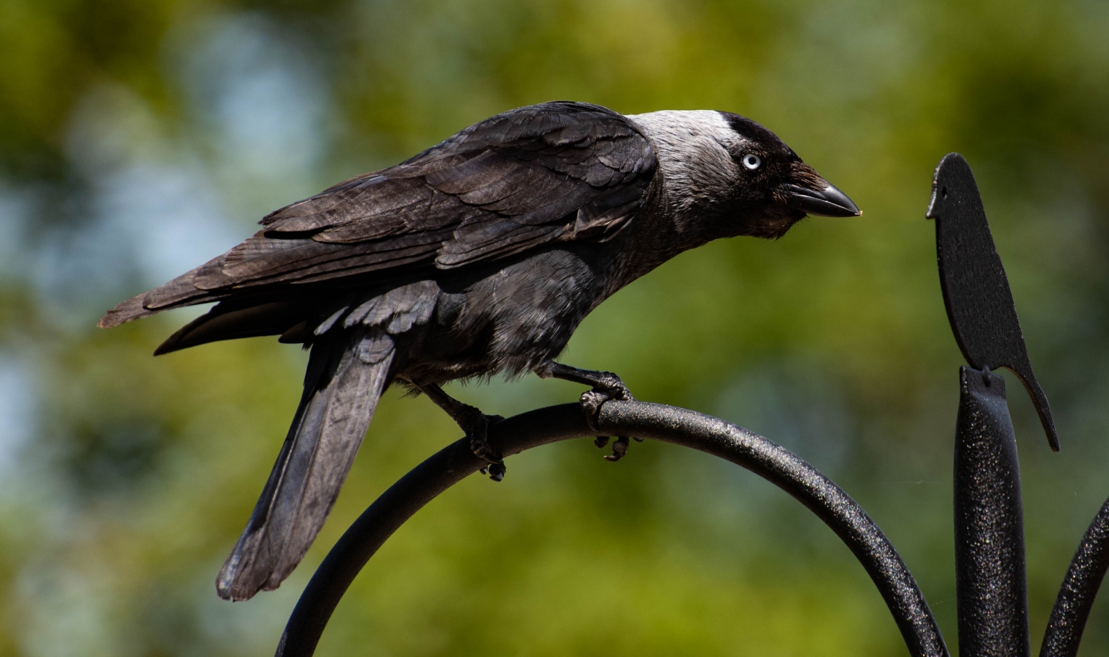 We hadden net een nieuwe feeder en ophangsysteem gekocht bij Vivara, en op de top van de "mast" zit zo'n klein, zwart, metalen vogeltje. Het oog is een gaatje doorheen het profieltje.