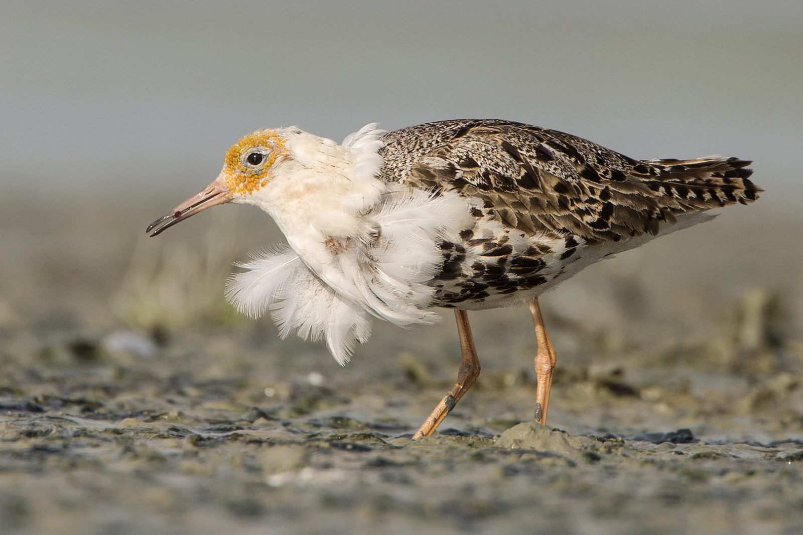 Een Kemphaan in mooi licht. Helaas is hij zijn indrukwekkende tooi al weer aan het verliezen...