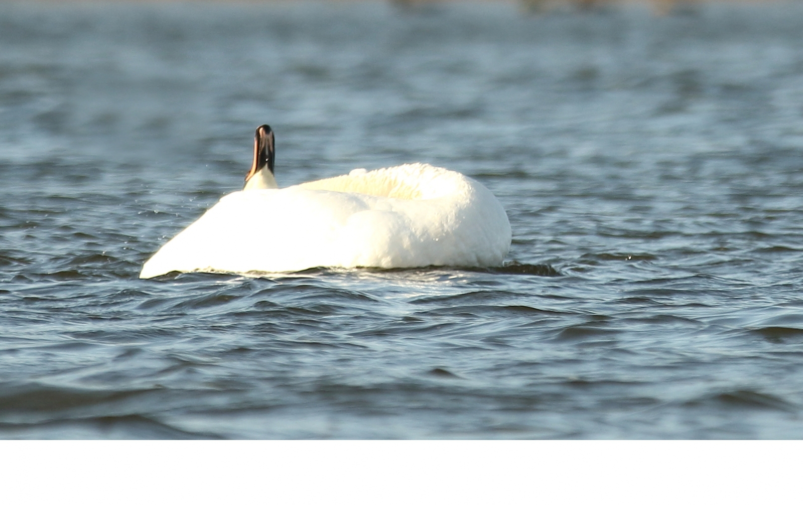 knobbelzwaan -v - ''inspecteert'' de lucht boven de plas