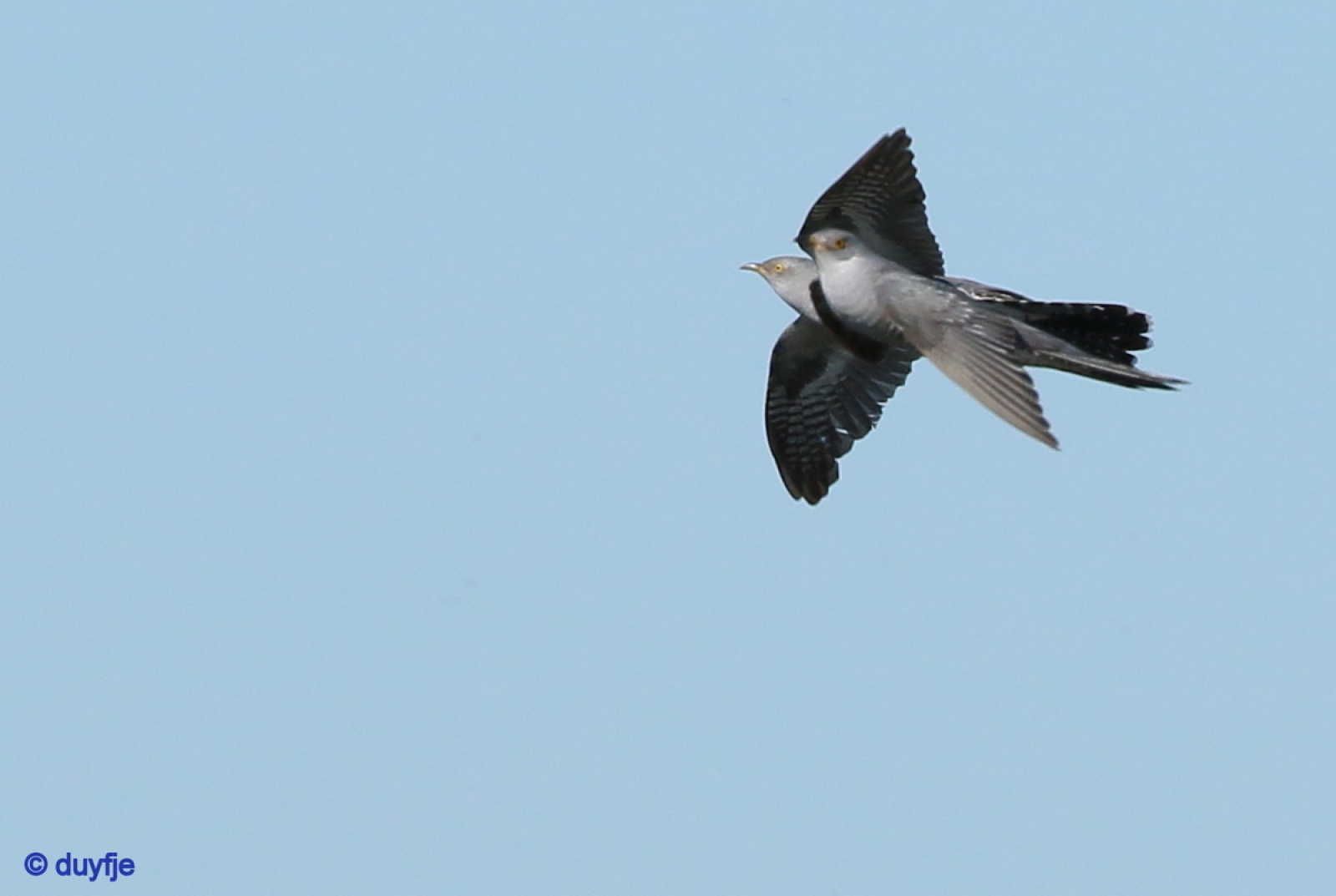 Deze Koekoeken zaten een hele tijd achter elkaar aan. Tenslotte kwamen ze samen langs vliegen en verdwenen achter het struikgewas.