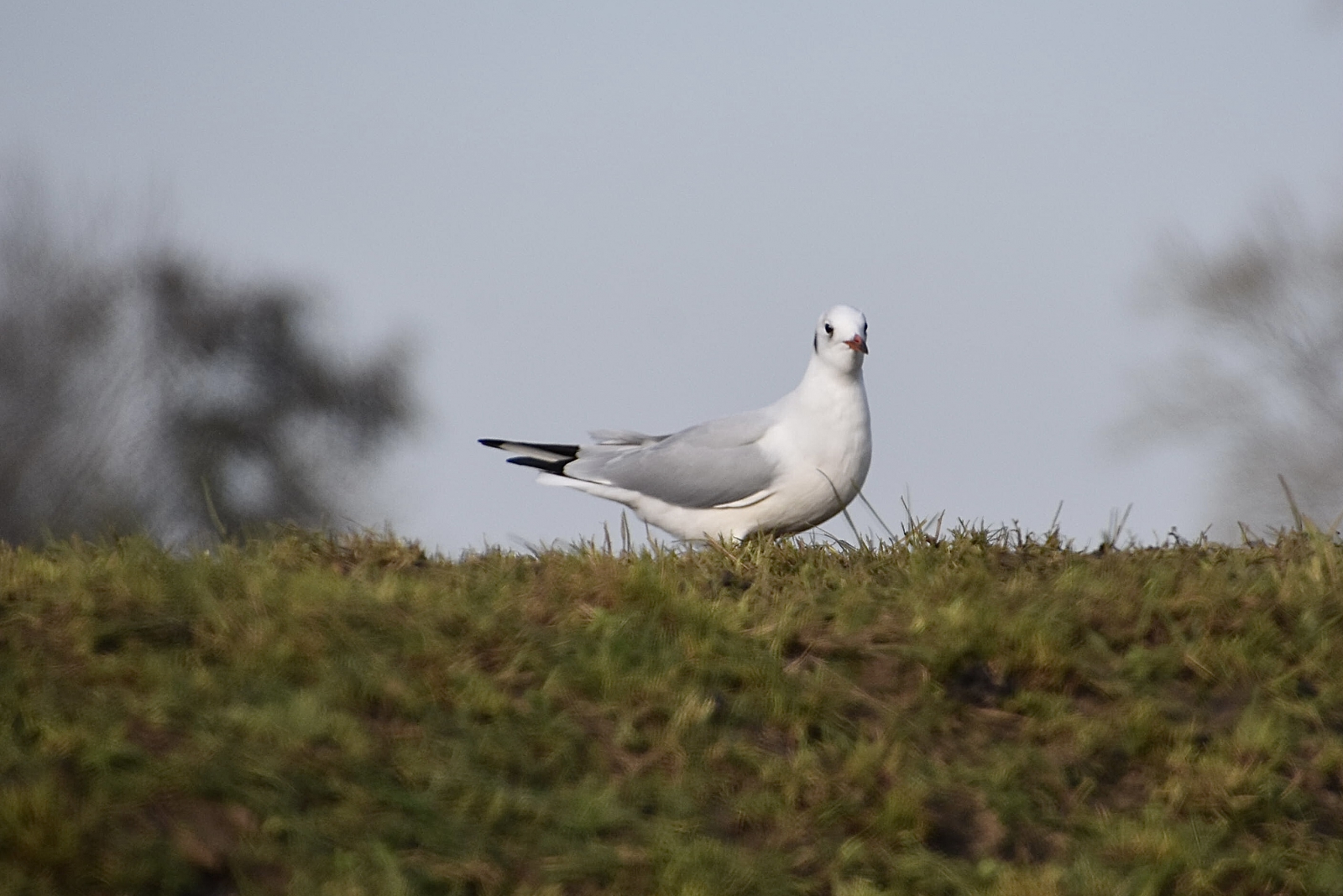 Bovenaan het dijkje van het fietspad