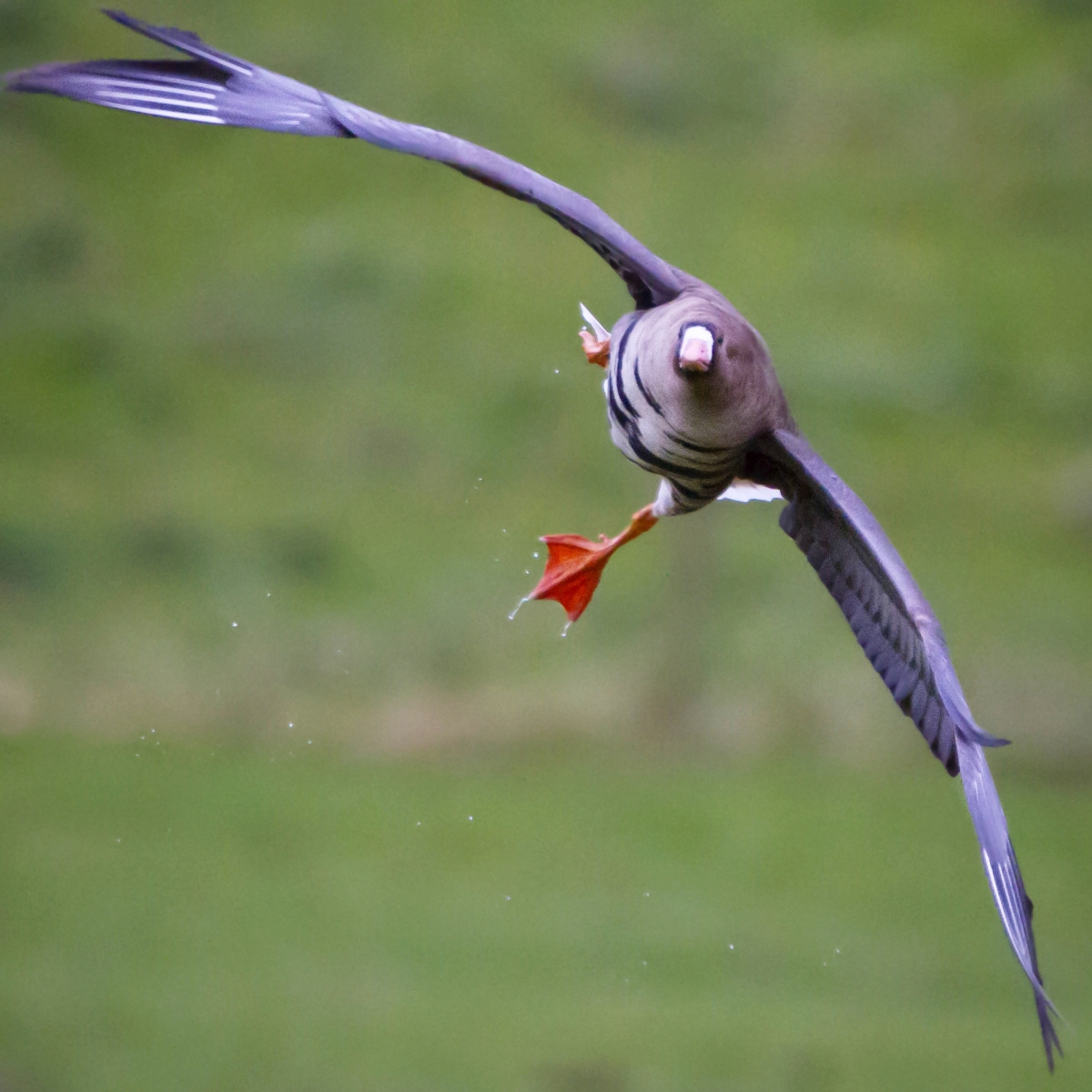 Deze Kolgans heeft zojuist de natte uiterwaarden bij Driel verlaten en doet zijn best de zijwaardse wind te trotseren.