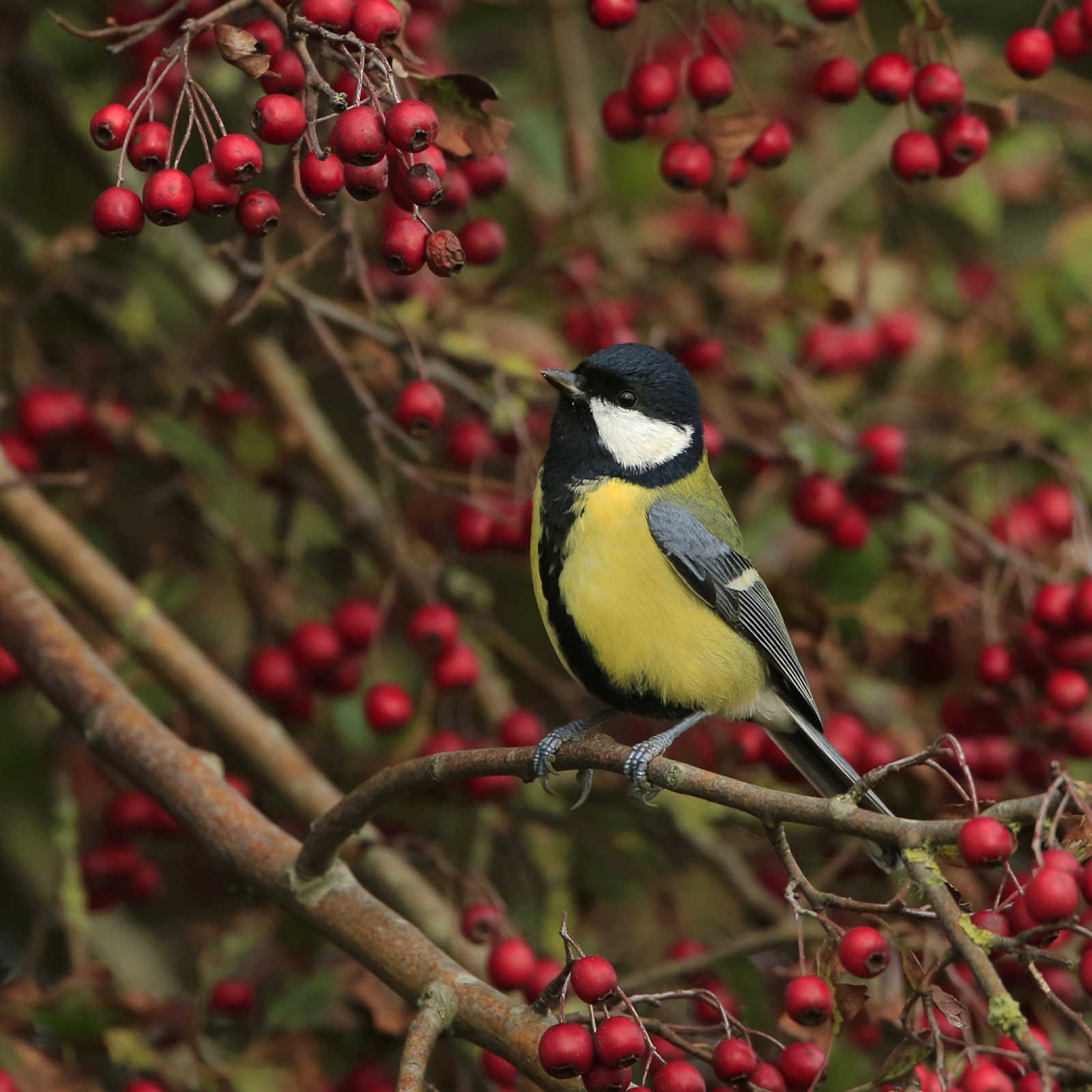 Het druilerige weer nodigt niet echt uit tot het maken van platen buiten de deur... Daarom ter opbeuring nu maar een kleurrijke plaat van vorige maand, toen deze struik nog volop bessen had ...