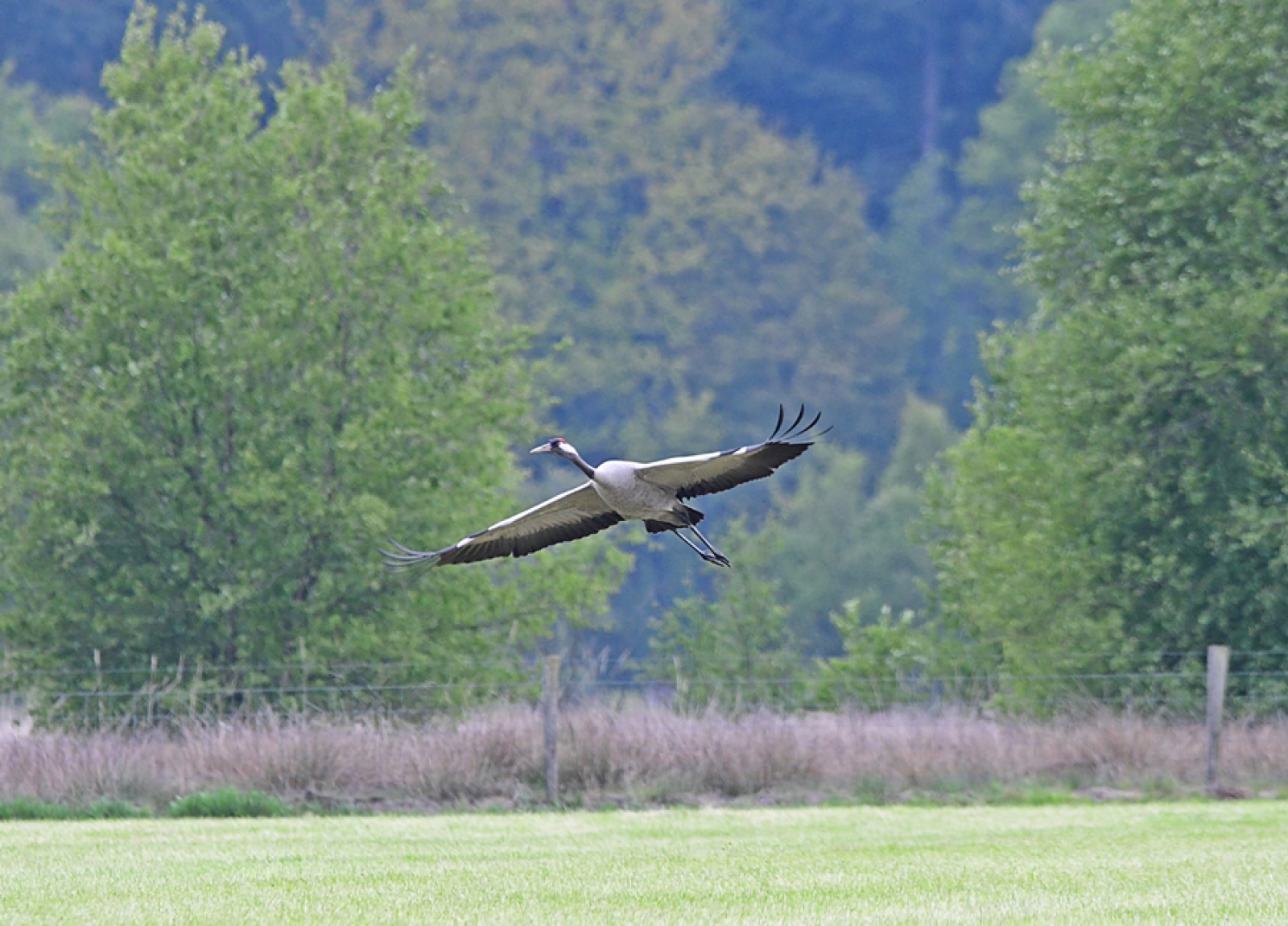 17 mei, een kraanvogel in volle vlucht
