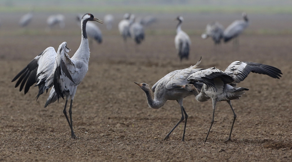 Voeding en opvoeding ... Hier wordt de jeugd even vermanend toe gesproken... :-) Grus grus - Kraan - KRAANVOGEL - Common Crane - Kranich - Grue cendrée Canon EOS 5 D Mark III + Canon EF 500 mm F/4 L IS USM ; 1/664 sec. ; F/6.4 ; 640 ISO