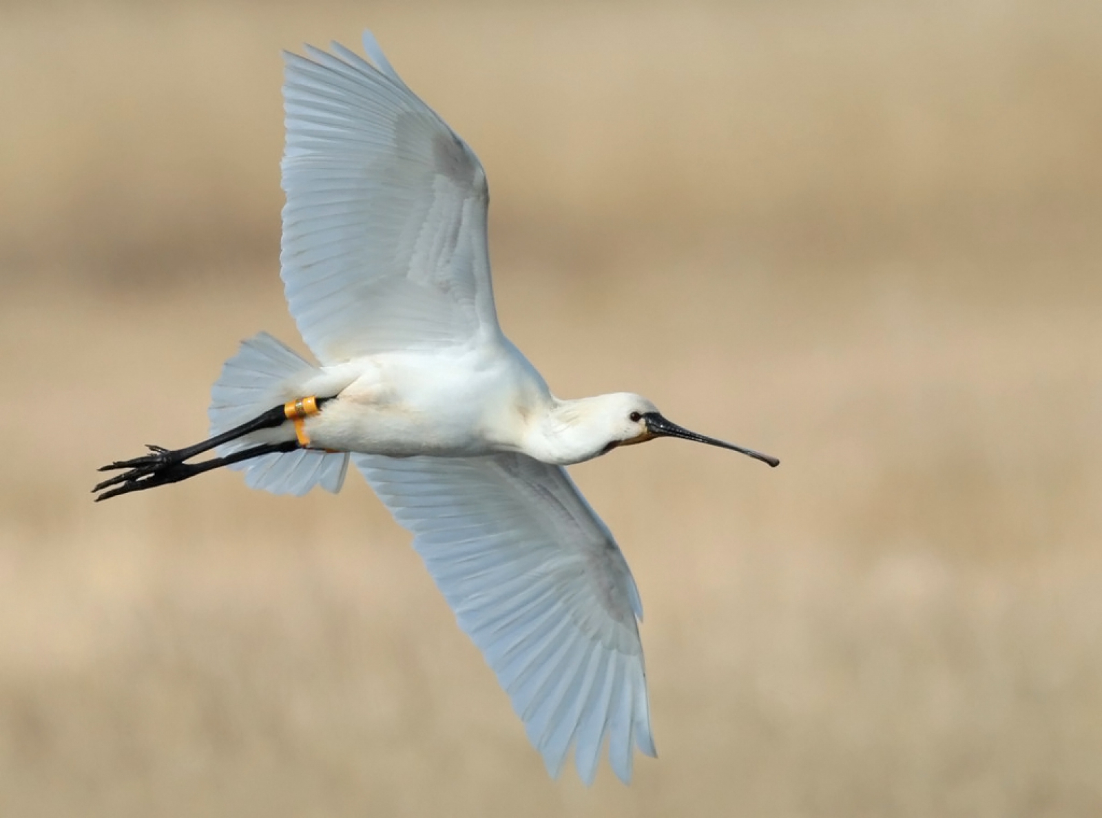 Je ziet ze weer steeds meer; Lepelaars. Bij Den Oever zitten twee kolonies, en daar wordt geringd. Mooi zijn die ringen niet, informatief wel. Goede kans dat deze vogel terug is op zijn / haar geboortegrond.