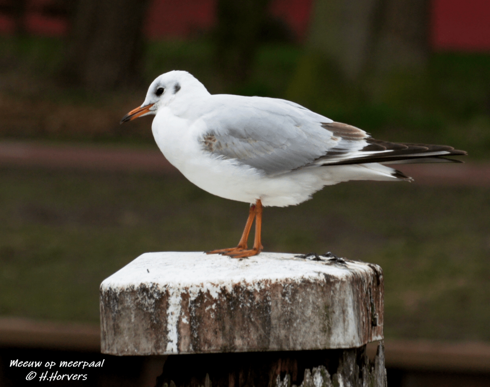 Meeuw op meerpaal