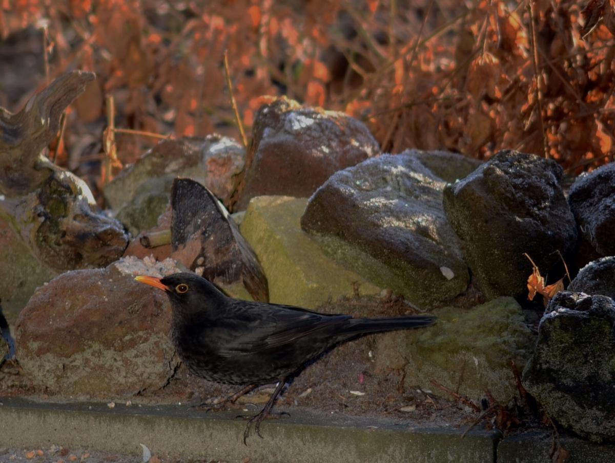 Deze Merel scharrelt dagelijks in mijn tuin , met het vrouwtje.
