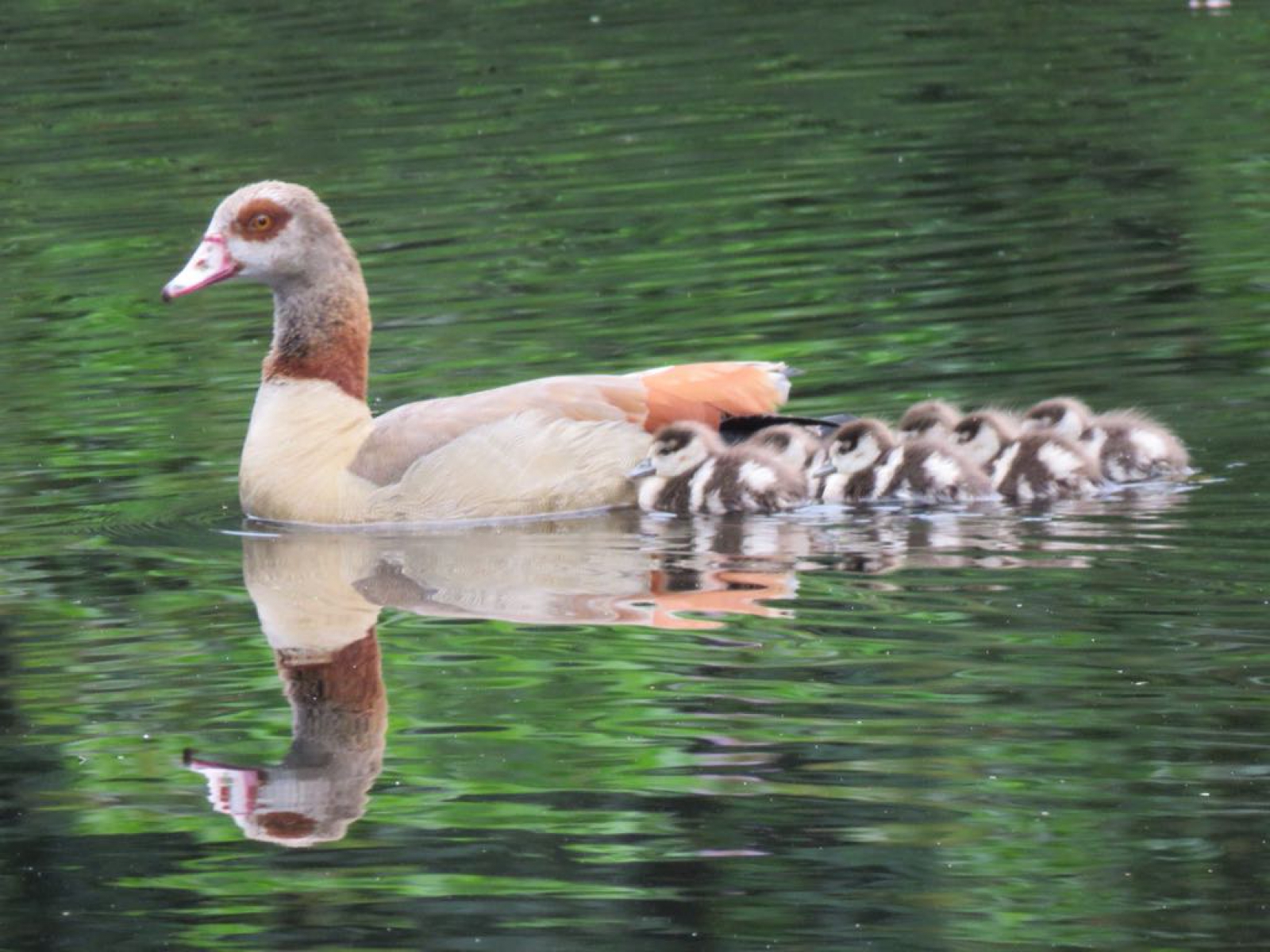 Prachtige nijlgans met pulletjes op kasteel Groeneveld.