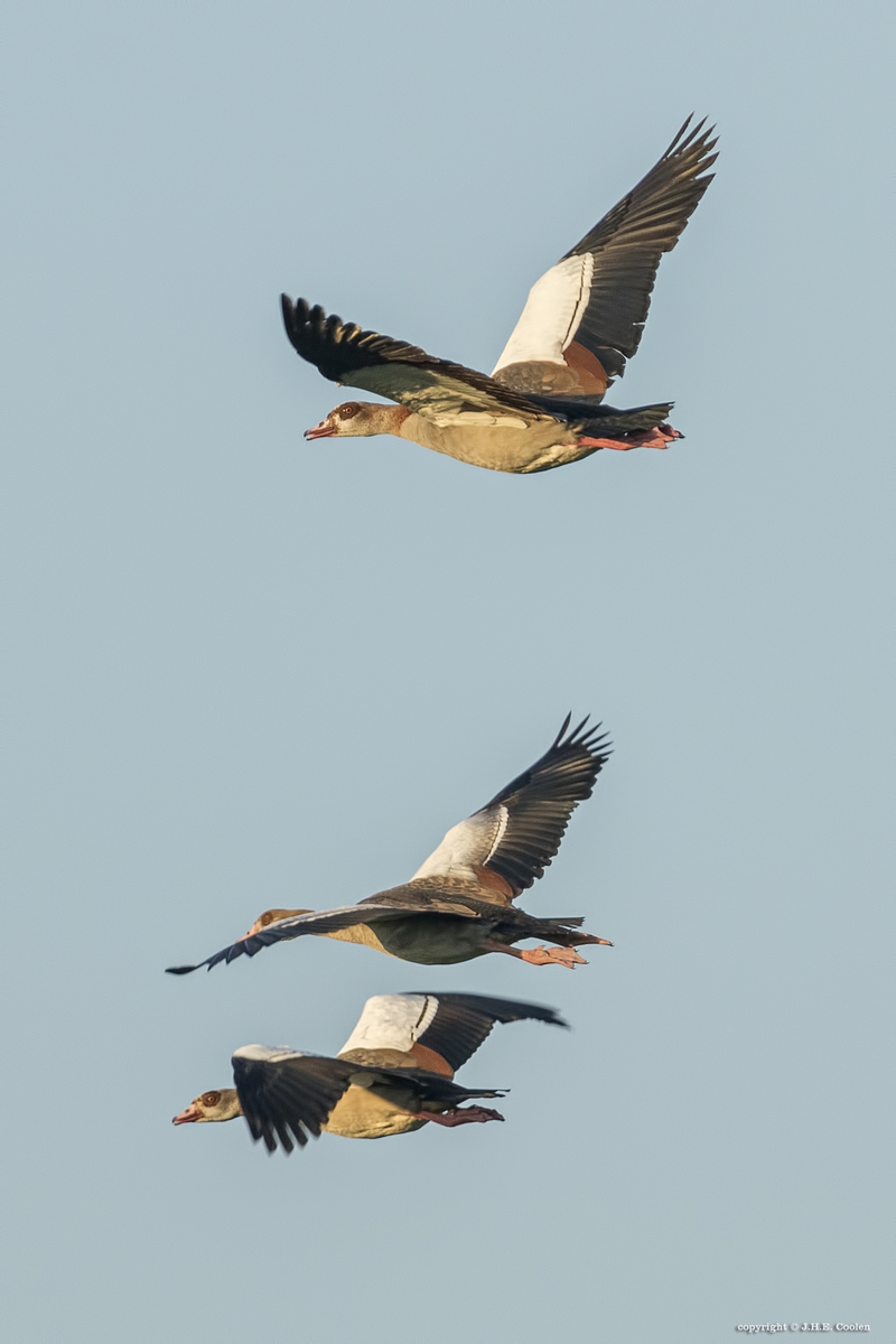 Mooie vluchtopname van de Nijlganzen.