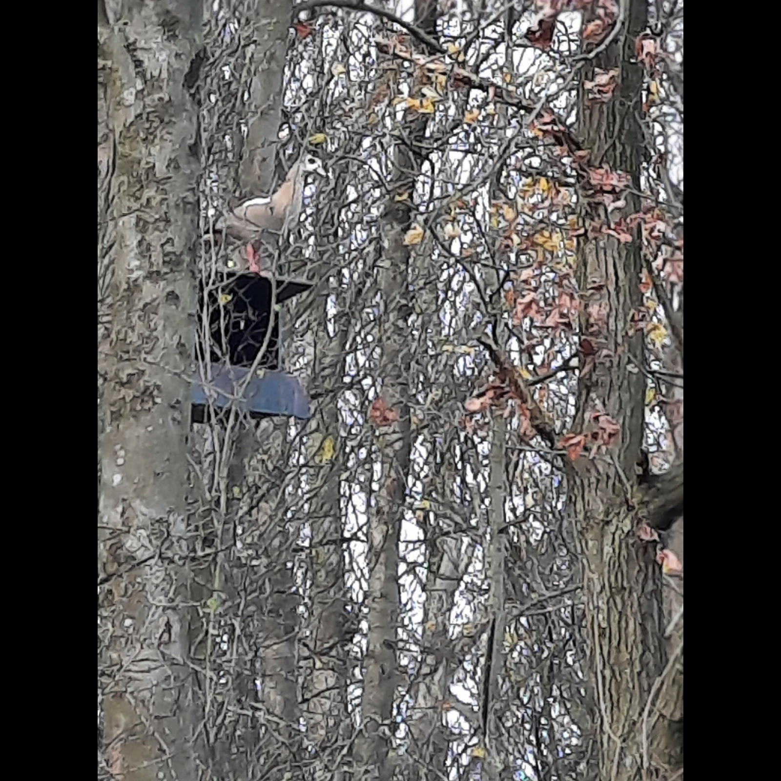 Eind november, deze Nijlgans aast al op verse eieren/jonge vogeltjes. Hij zit al op nestkast te wachten.