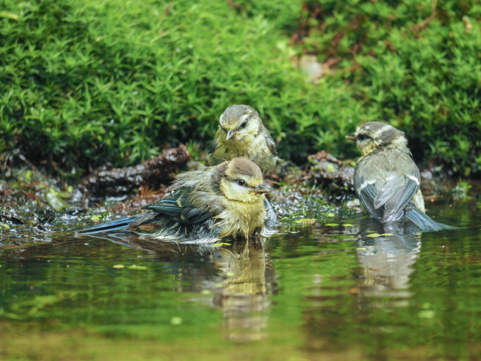 vanuit een hut zag ik deze pimpelmezen in het water en de pimpelmezen badend zag ik niet vaak en dus reden voor mij dat vast te leggen.