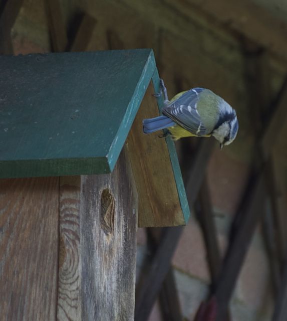 Deze pimpelmees is uren in de weer met dit kastje, Hij roffelt erop, gaat erin en eruit. Zou het goed genoeg zijn??