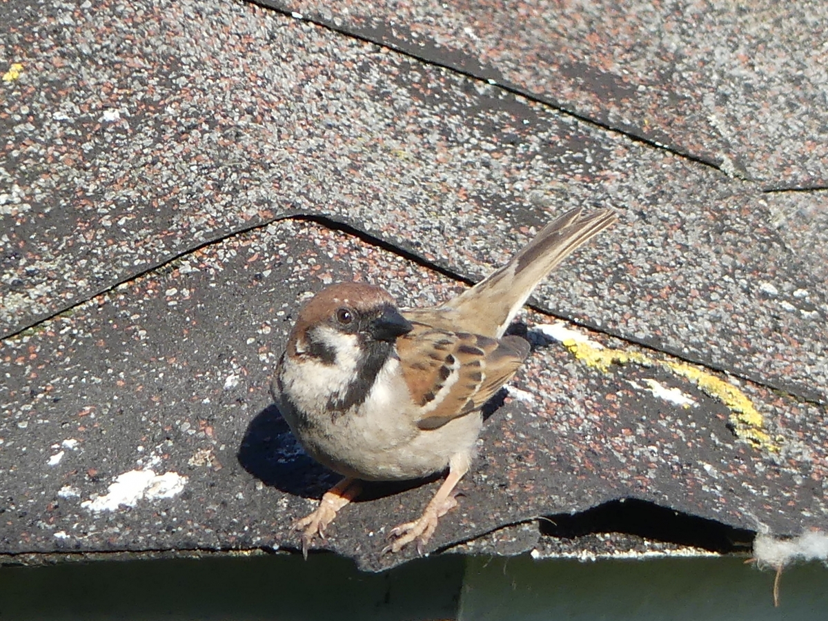 Op het schuurdak is het een verzamelplaats van vogels. Daar zitten ze veilig voor de katten.