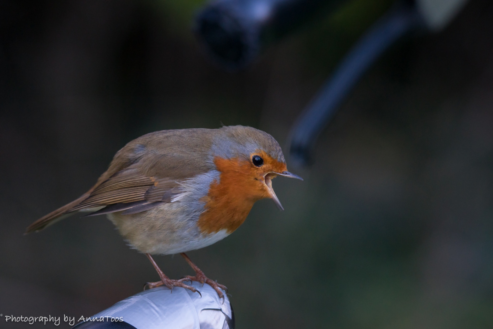 Roodborstje kwam gezellig bij me op mijn fiets. Ik heb wel trek in wat lekkers.