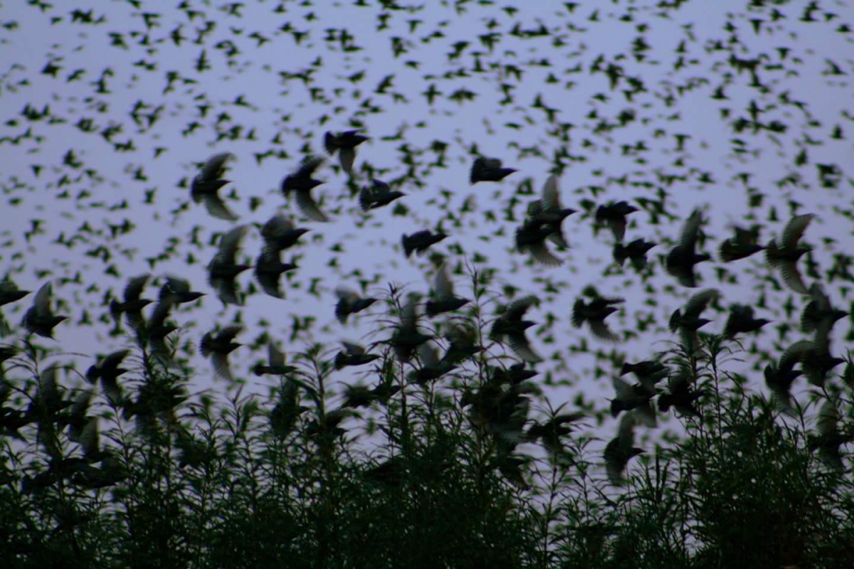 Spreeuwen in hun slaap griend bij de windmolens van culemborg