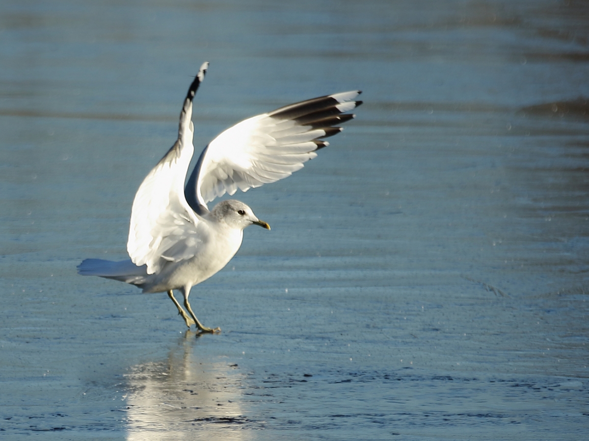 stormmeeuw op het ijs