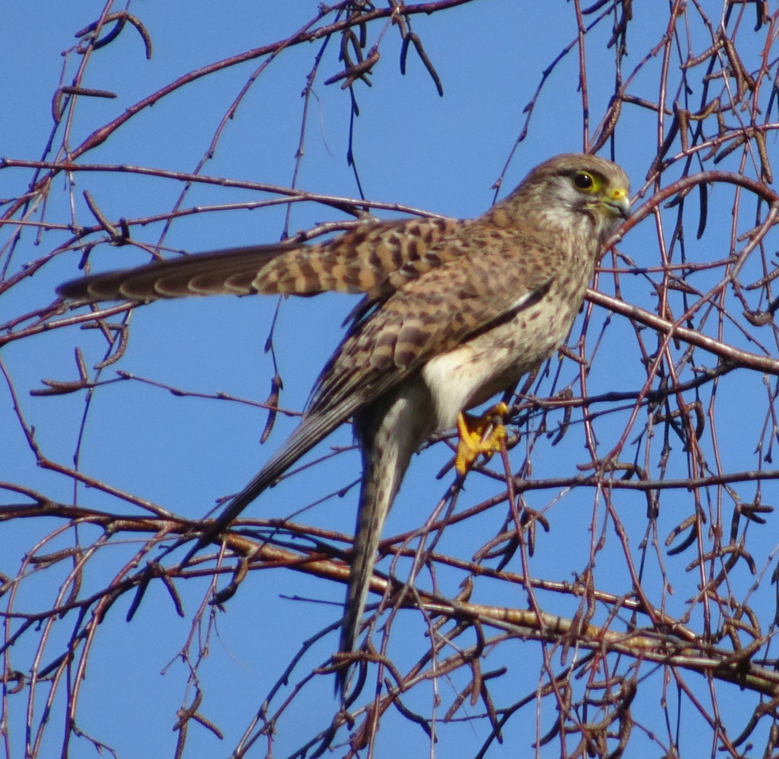 Torenvalk; vanmorgen (20-03-'21) tijdens een fietstocht bij Teuge. Zat zeker een kwartier in een berkenboom aldaar.