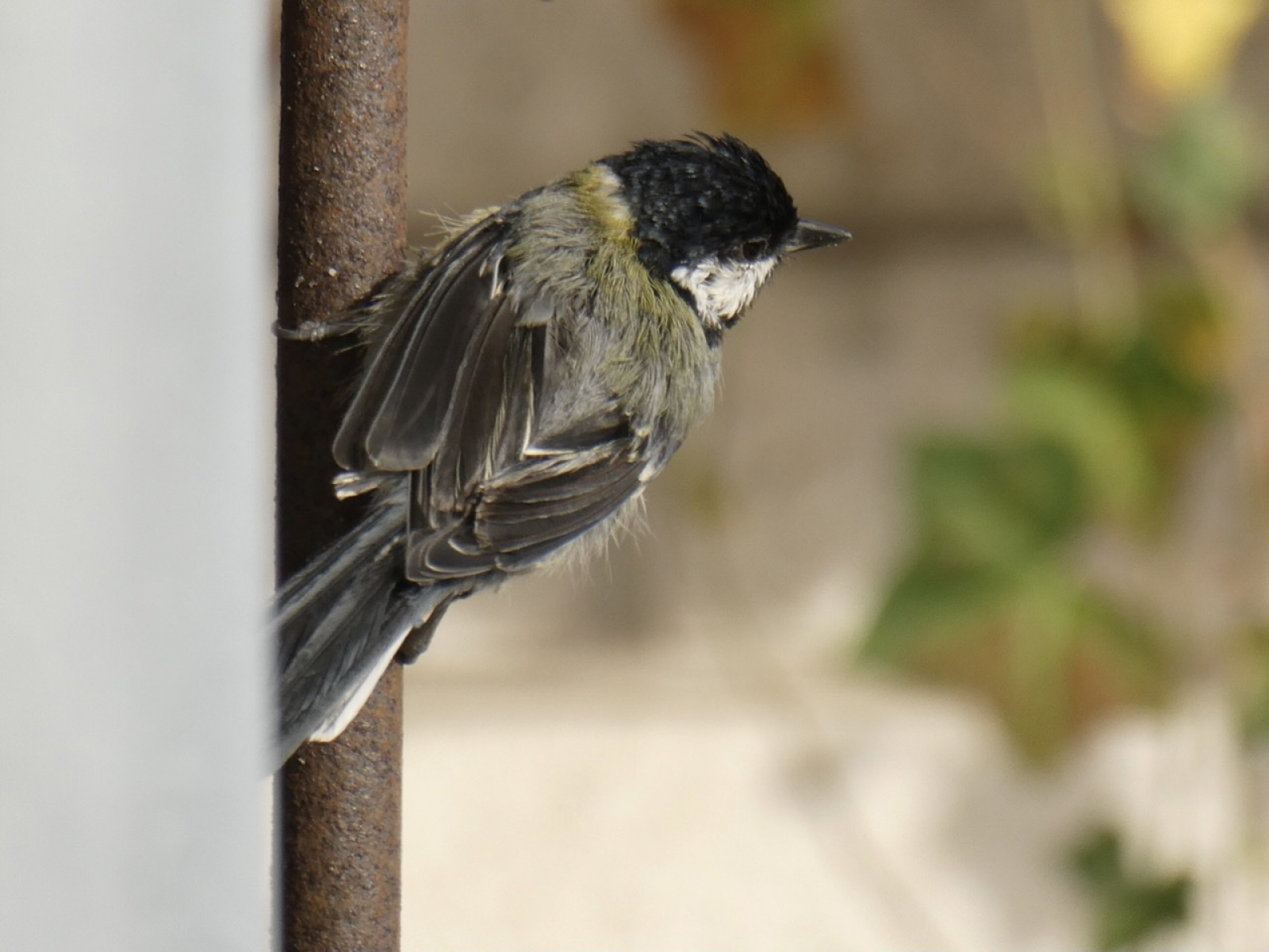 Die werd zo verfrommelt doordat hij/zij door de gaatjes moest kruipen voor de pindakaas . Leuke foto's zijn het - op je balkon genomen ??