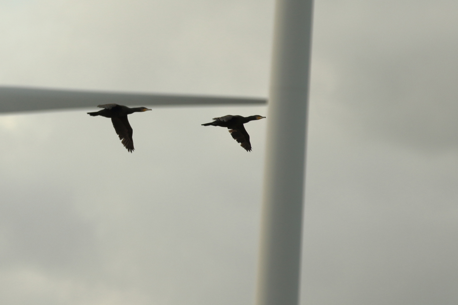 de aalscholvers vliegen net voorlangs