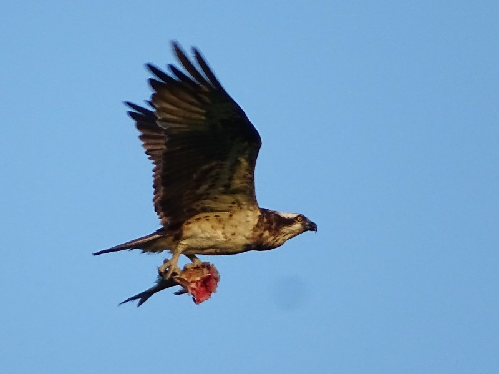 4 boven in een elektriciteitsmast. Ik ben er voorzichtig heen gelopen. Toen ik dichtbij was vlogen ze allemaal één voor één op. Eén daarvan vloog mooi vlak langs mij heen en bracht mij deze foto op. Prachtig in het avondlicht.