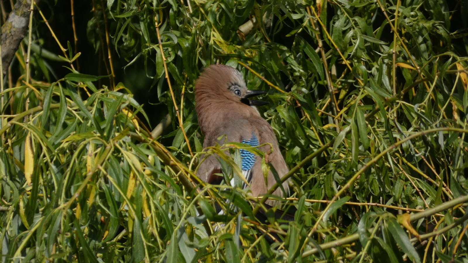 Jonge Vlaamse Gaai die of schrikt of zich ergens over verbaasd!