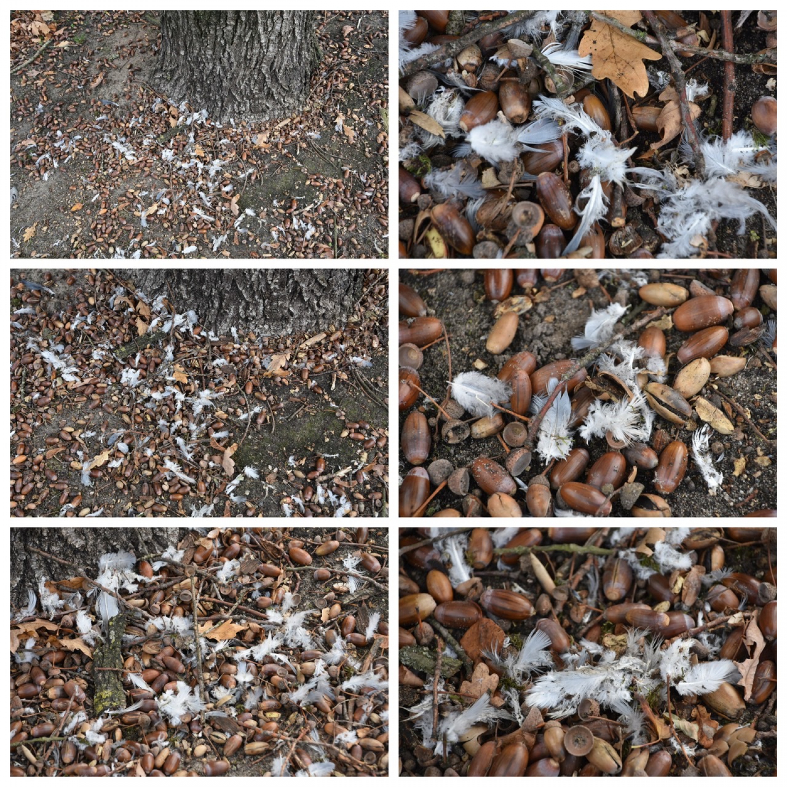 Als ik zoiets tref kijk ik altijd omhoog, heeft vast een rover in de boom gezeten die zijn prooi heeft geplukt !!