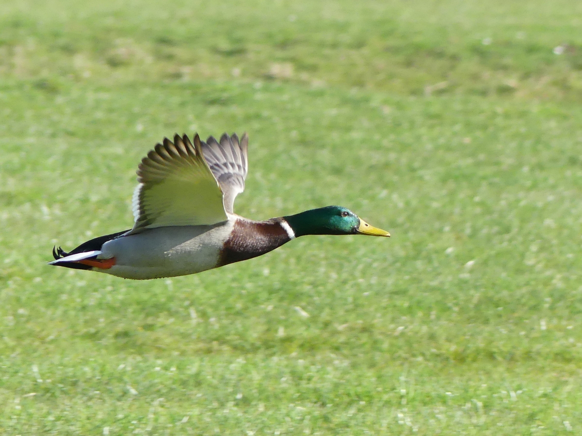 Een man Wilde Eend vloog langs de tuin. Altijd spannend een vliegend dier in je beeld te vangen.