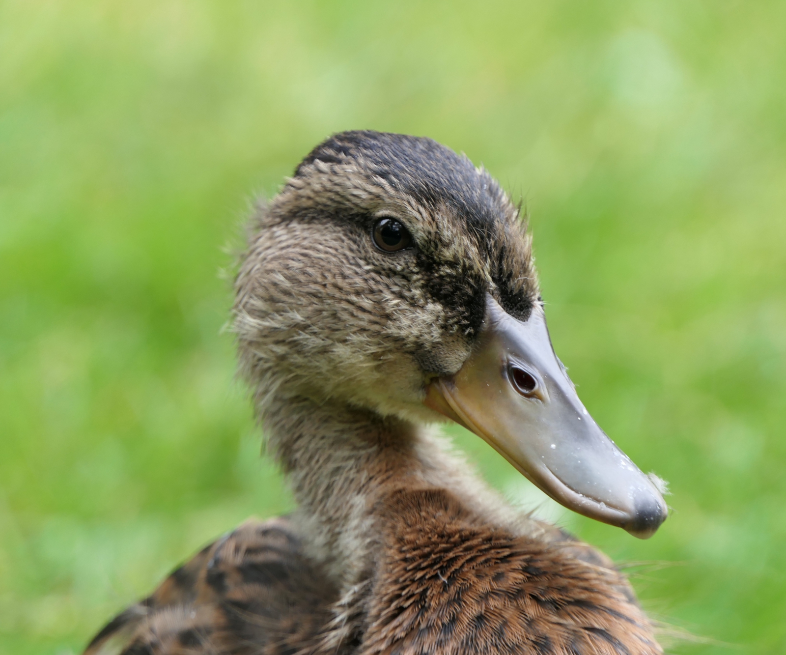 Een kleine wilde jonge eend gaat er eens parmantig voor staan. Het lijkt wel een fotomodel.