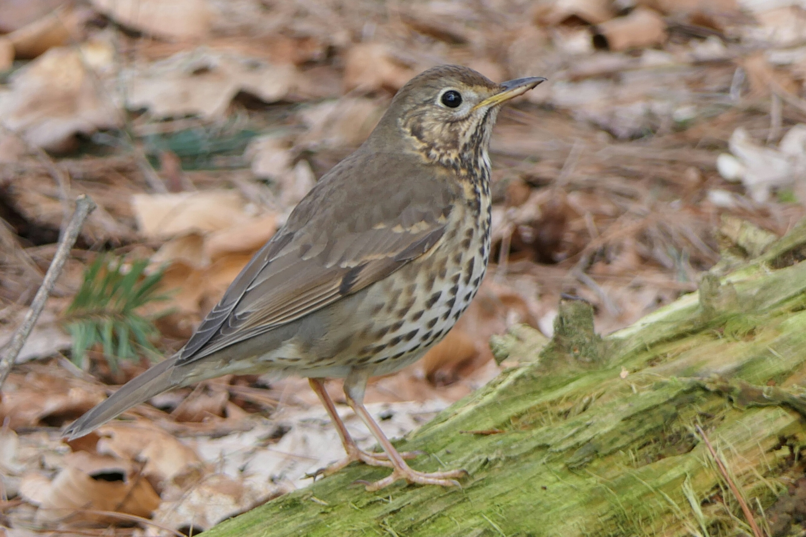 Prachtige zanglijster valt bijna niet op tussen al dat blad. Maar ik hoorde hem/haar ritselen.