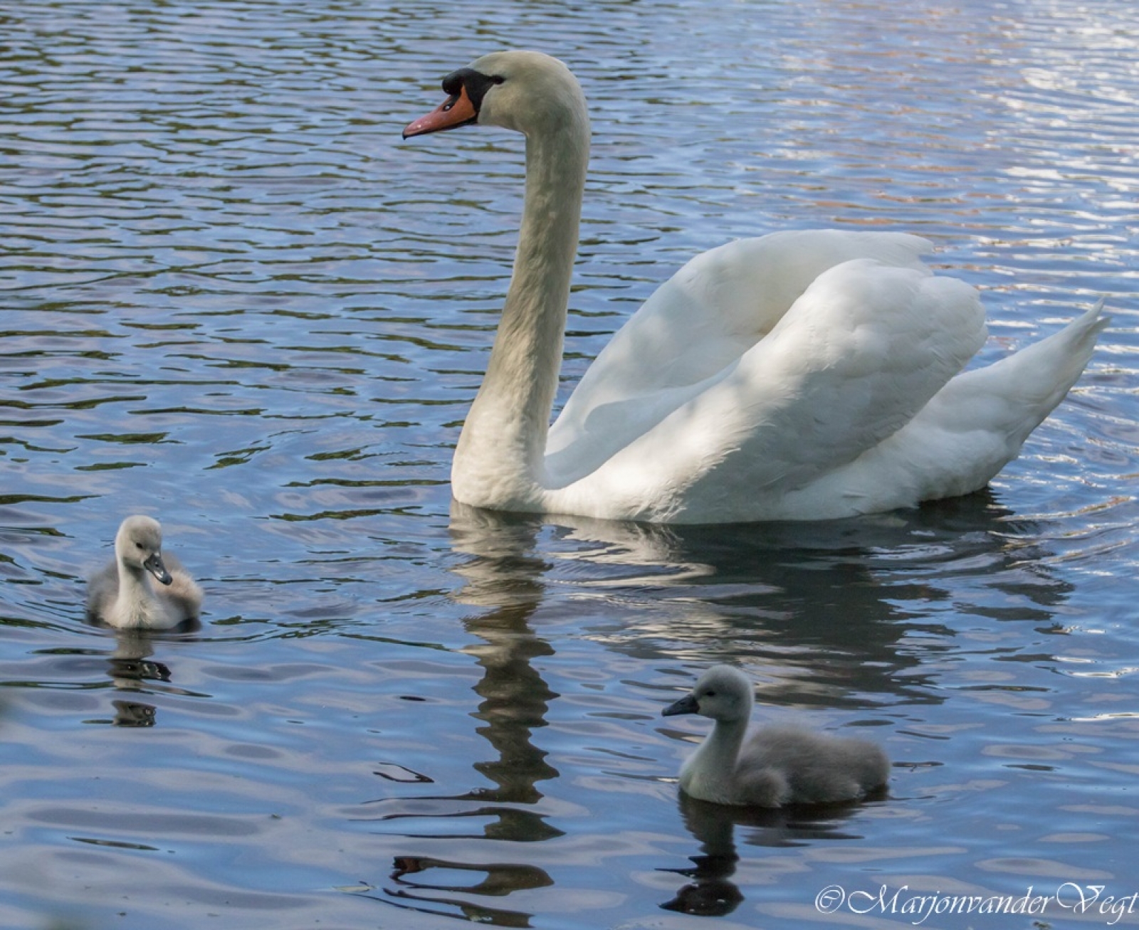 Mooie serie van deze trotse zwaan met jonkies.