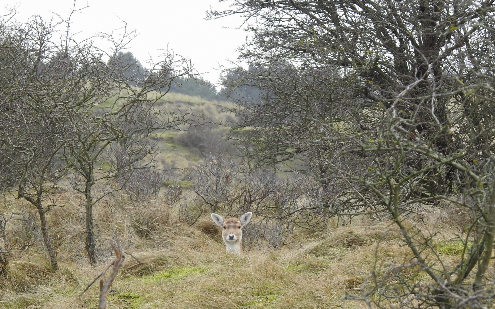 leuke foto, goed gezien, fotogeniek is het damhert zeker