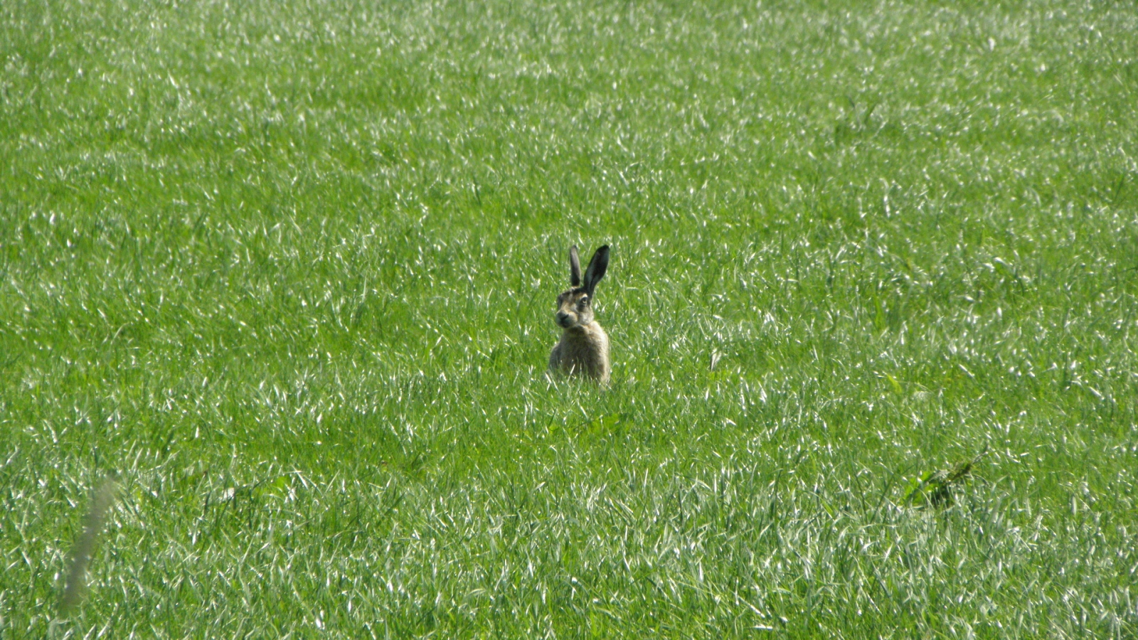 Bij een rit op mijn scootmobiel door de Horsten tussen Wassenaar en Voorschoten zat deze haas op de uitkijk in dit weiland.