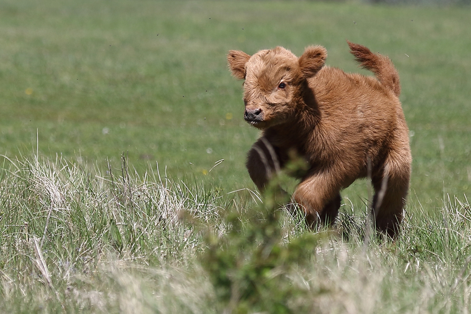 Schattige foto van dit dartelende kalfje. Prachtig moment vastgelegd.